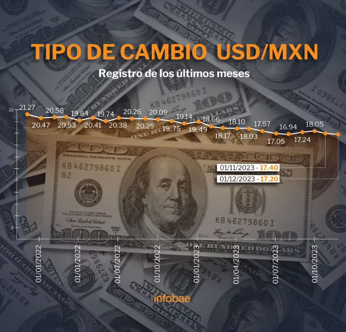 En la jornada de hoy el dólar estadounidense se cotiza al comienzo de sesión a 16,52 pesos mexicanos en promedio, de manera que implicó un cambio del 0,18% si se compara con la cotización de la jornada previa, cuando acabó con 16,55 pesos.